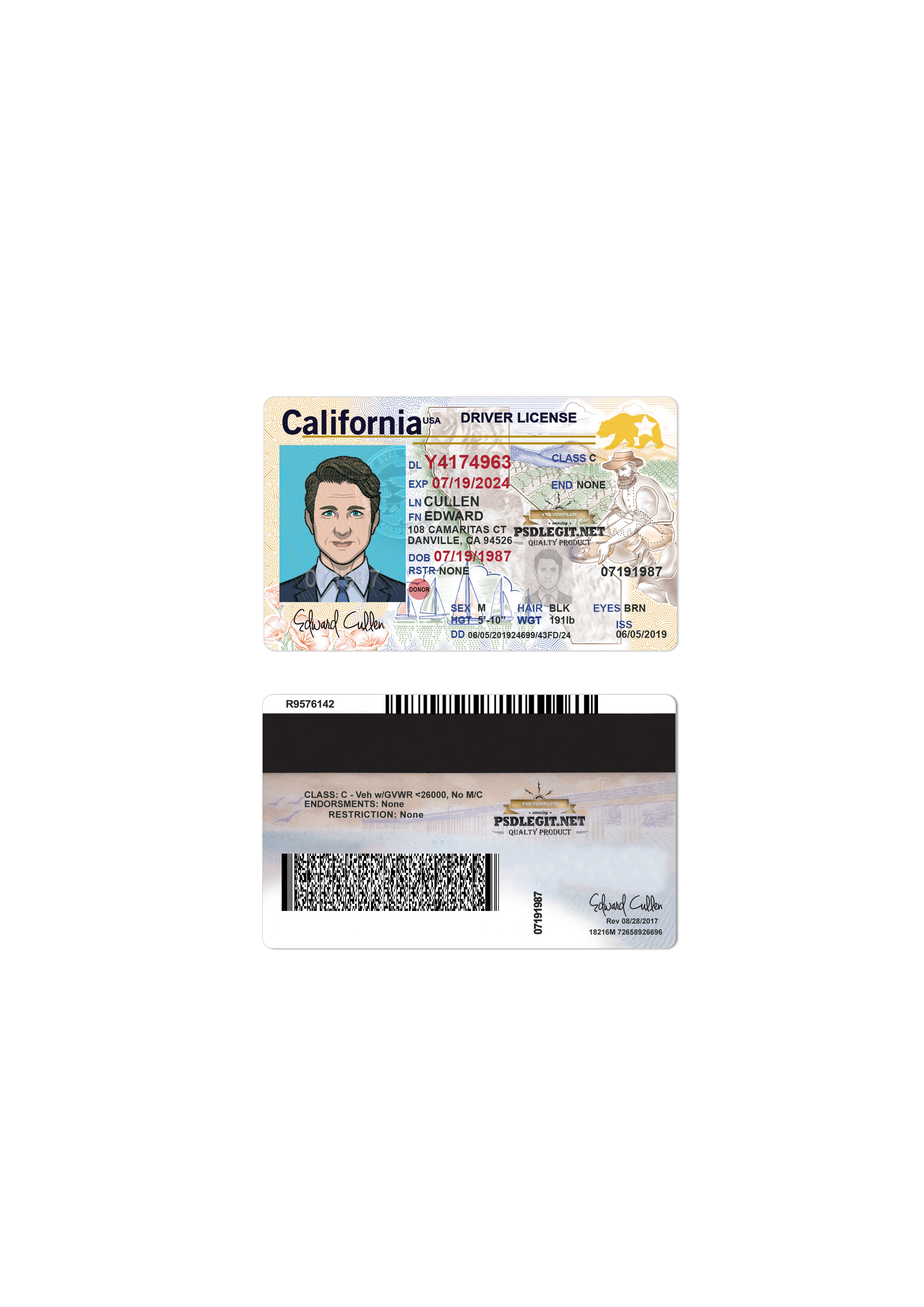 Buying and possessing California Driving License psd template is not illegal. However, This template is for web illustrative purpose only. The use for fraudulent purposes is prohibited. so,use the template with your own responsibility.